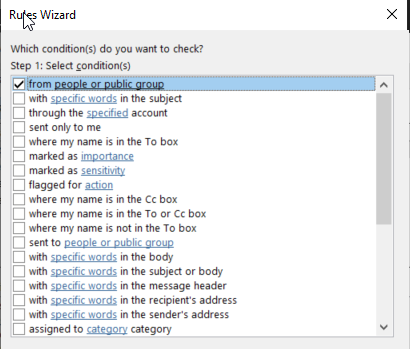 9. Choose the message conditions you prefer under Step 1: Select conditions.